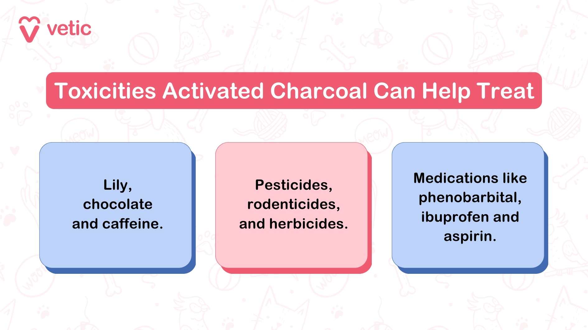 No. It doesn’t work for alcohol, heavy metals, corrosives, or xylitol poisoning. If your pet has come in contact with any of these, head to the veterinary emergency directly.