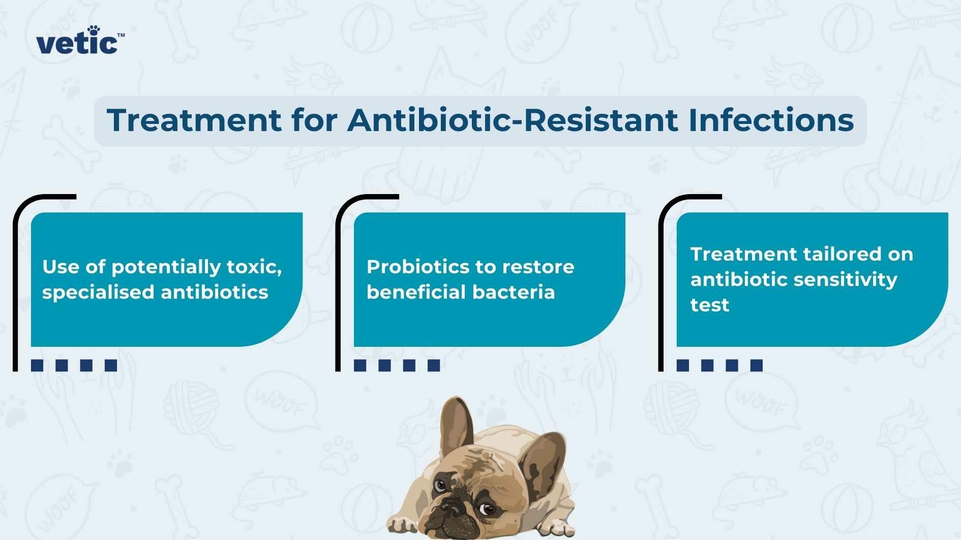 Antibiotic resistant infections are caused by bacteria that no longer respond to commonly used antibiotics in dogs such as amoxicillin, penicillin, cefixime, cefpodoxime, ceftriaxone, azithromycin, doxycycline or clindamycin.