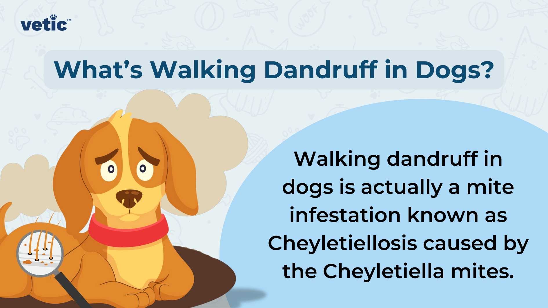 Cheyletiella is a type of mite that causes “walking dandruff” in dogs.
