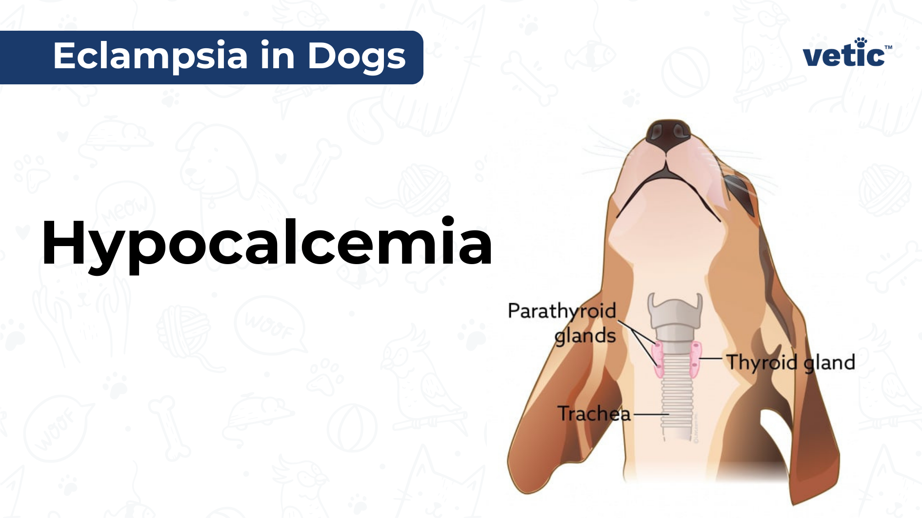 Infographic by Vetic on the Causes of Eclampsia in Dogs 1. Poor nutrition and unbalanced diet 2. High volume of milk production by the mother dog 3. Calcium supplements during pregnancy